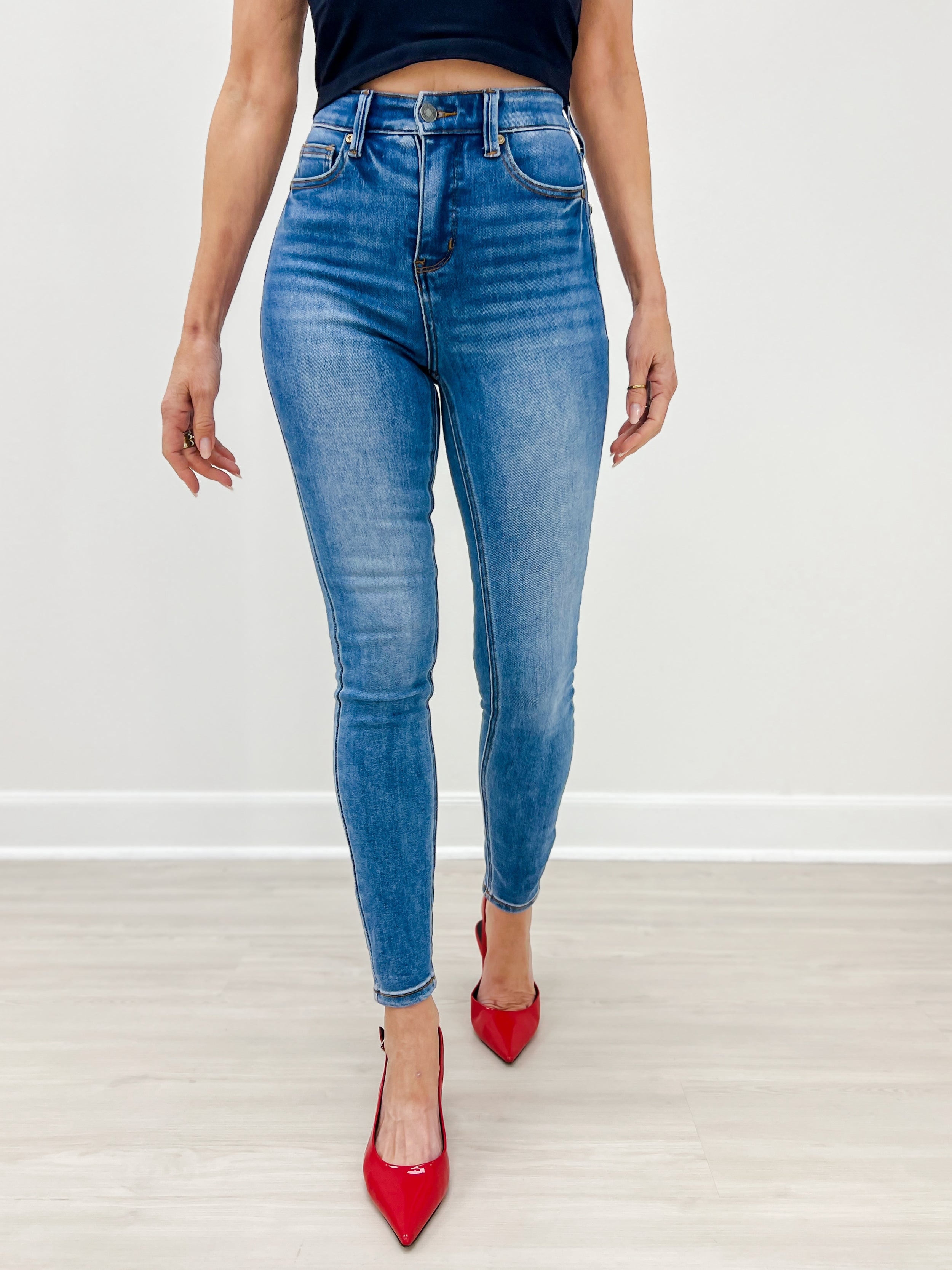 If you typically wear a size 5 in Judy Blue, your Avery Skinny size will be 8.